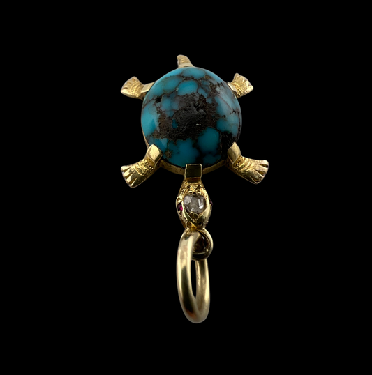 Vintage 18ct Gold, Turquoise, Diamond and Ruby Turtle Charm Pendant